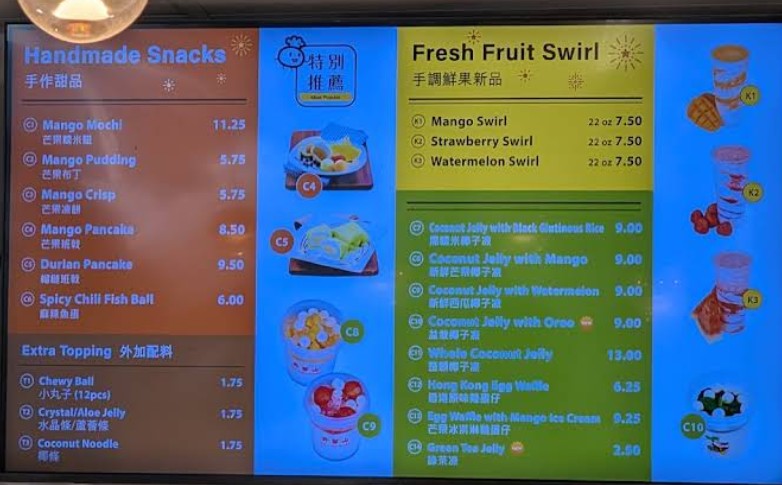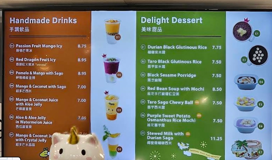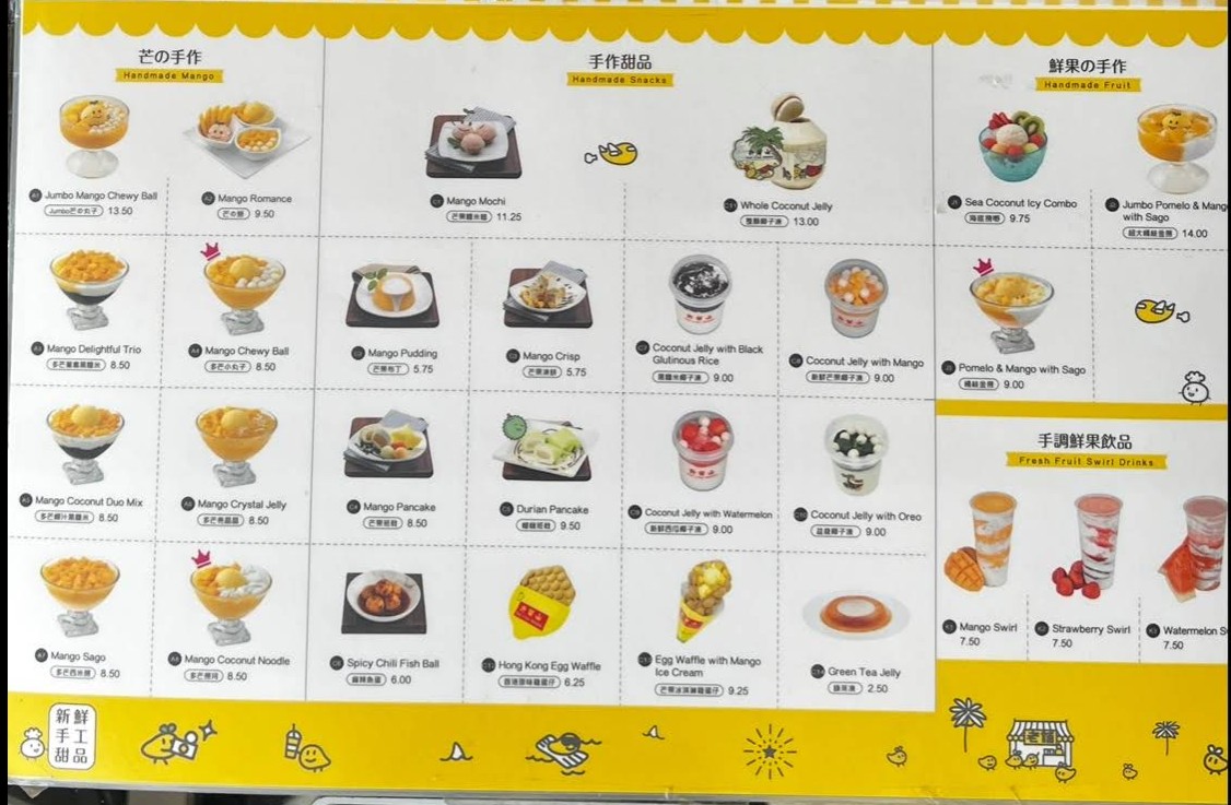Lightning fast service. Wet wipes at every table to clean your space before/after eating. There are fun plushies to look at while you’re ordering. Highly recommend the desserts with chewy balls, super satisfying. I saw towering boxes of mangoes in the back and I can definitely taste the freshness in what I ordered, no artificial mango here!